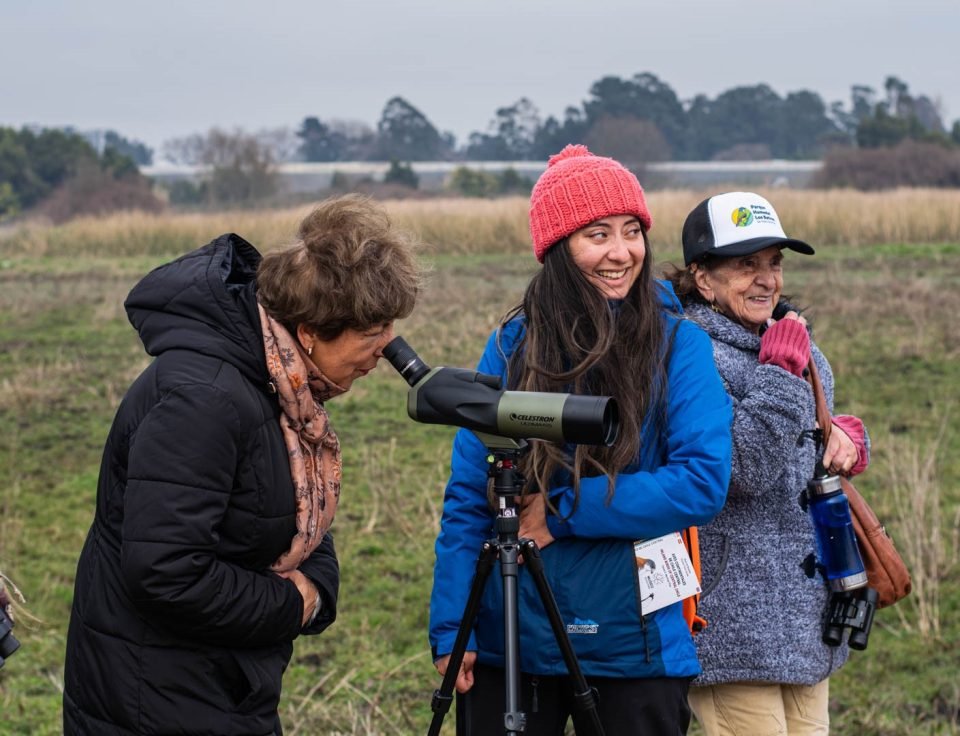 Orientados por la monitora del recinto, Katherine Sanhueza, los grupos del Centro Integral para el Adulto Mayor de Pedro de Valdivia, avistaron mediante el catalejo y binocular, especies como el Cuervo del pantano, Pato colorado, Queltehue, Trile y Tiuque, entre otros.