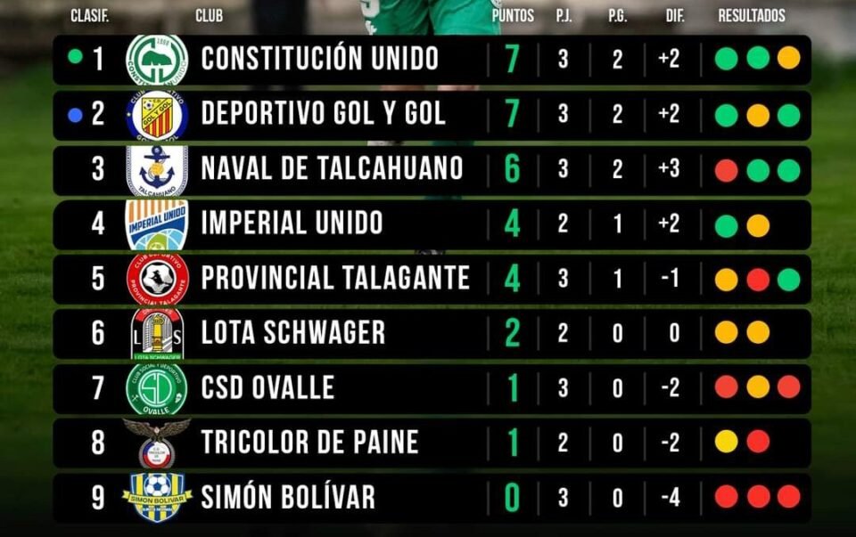 Constitución Unido junto Deportivo Gol y Gol lideran la punta con 7 unidades.